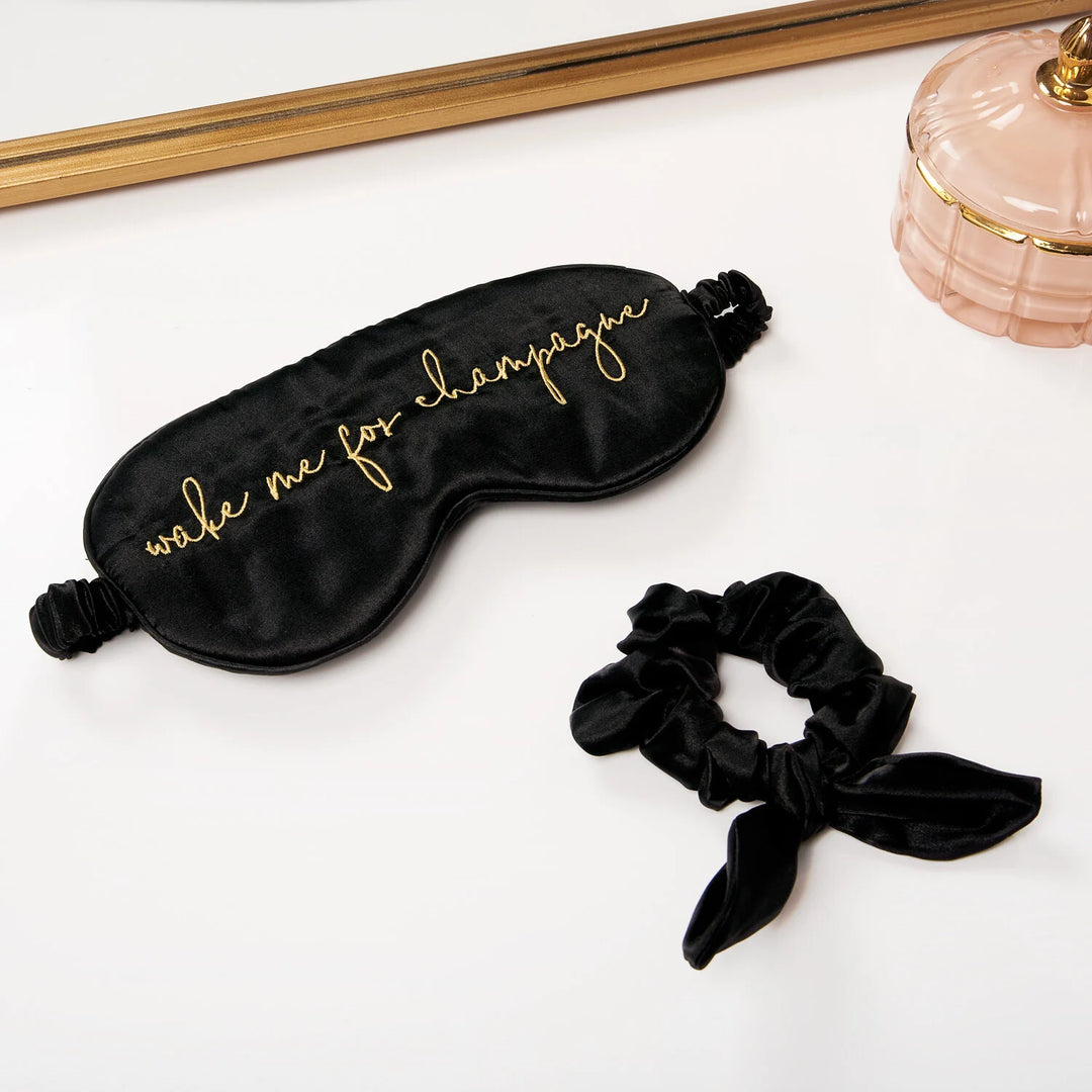 Katie Loxton Eye Mask And Scrunchie Set Wake Me For Champagne Black