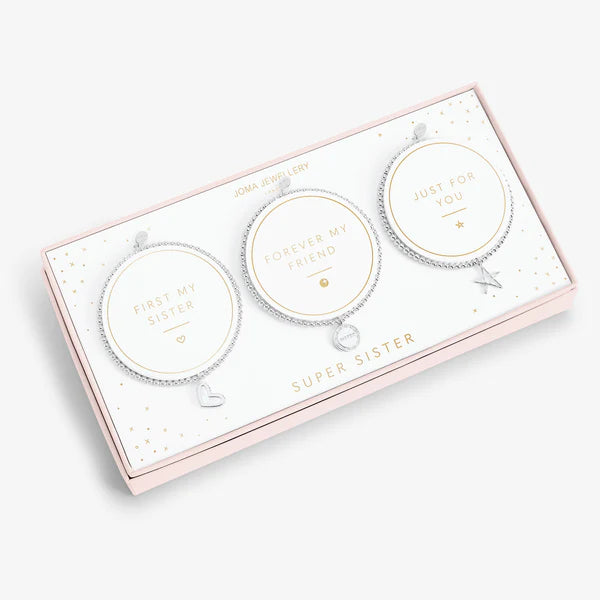 Joma Jewellery Celebration Set Super Sister Silver Set Of 3 Bracelets