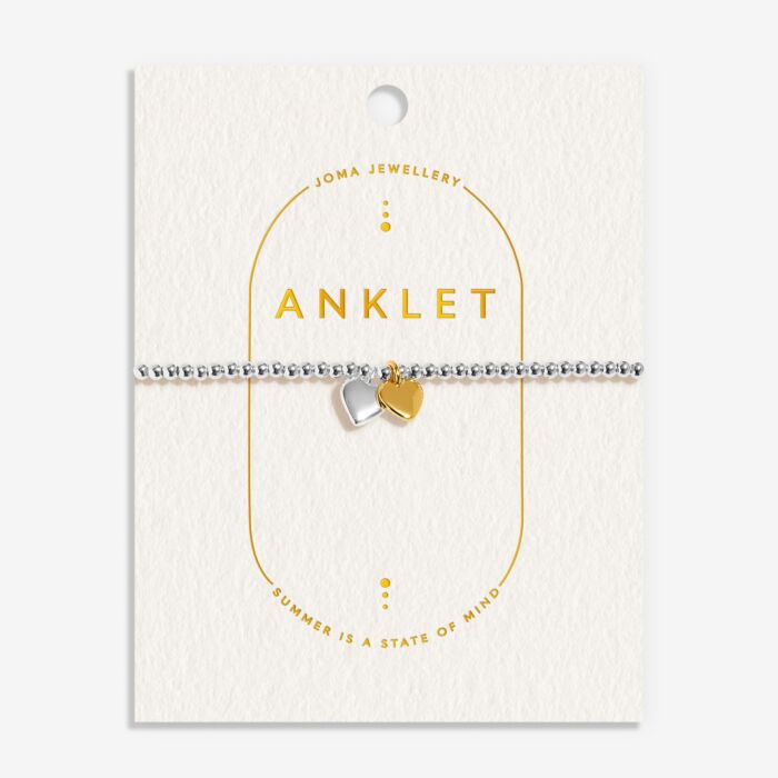 Joma Jewellery Anklet Double Heart Silver & Gold Plated Anklet