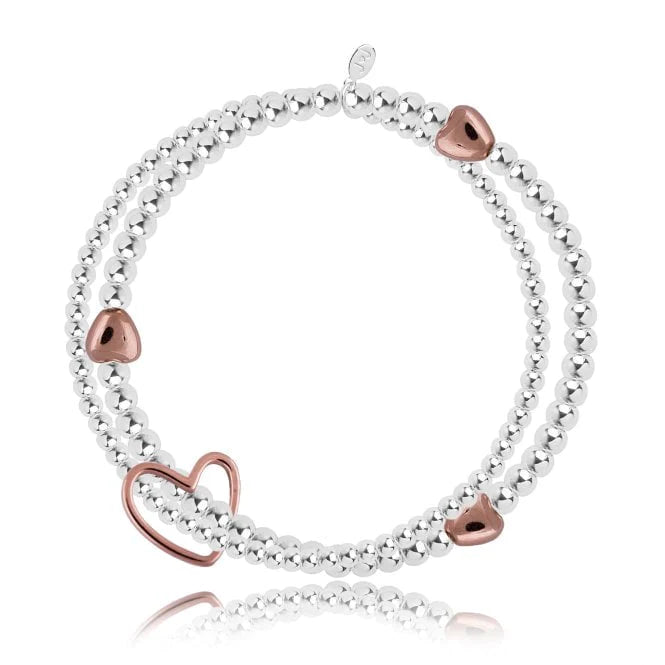 Joma Jewellery Lila Bracelet Double Silver Strands With Rose Gold Hearts