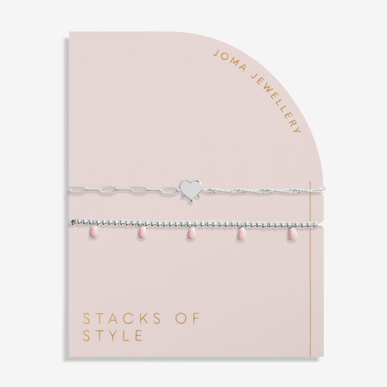 Joma Jewellery Stacks Of Style Pink Enamel Silver Plated Set Of 2 Bracelets