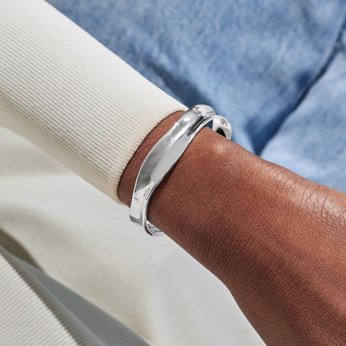 Joma Jewellery Bracelet Bar Wave Bangle Silver Plated Bangle