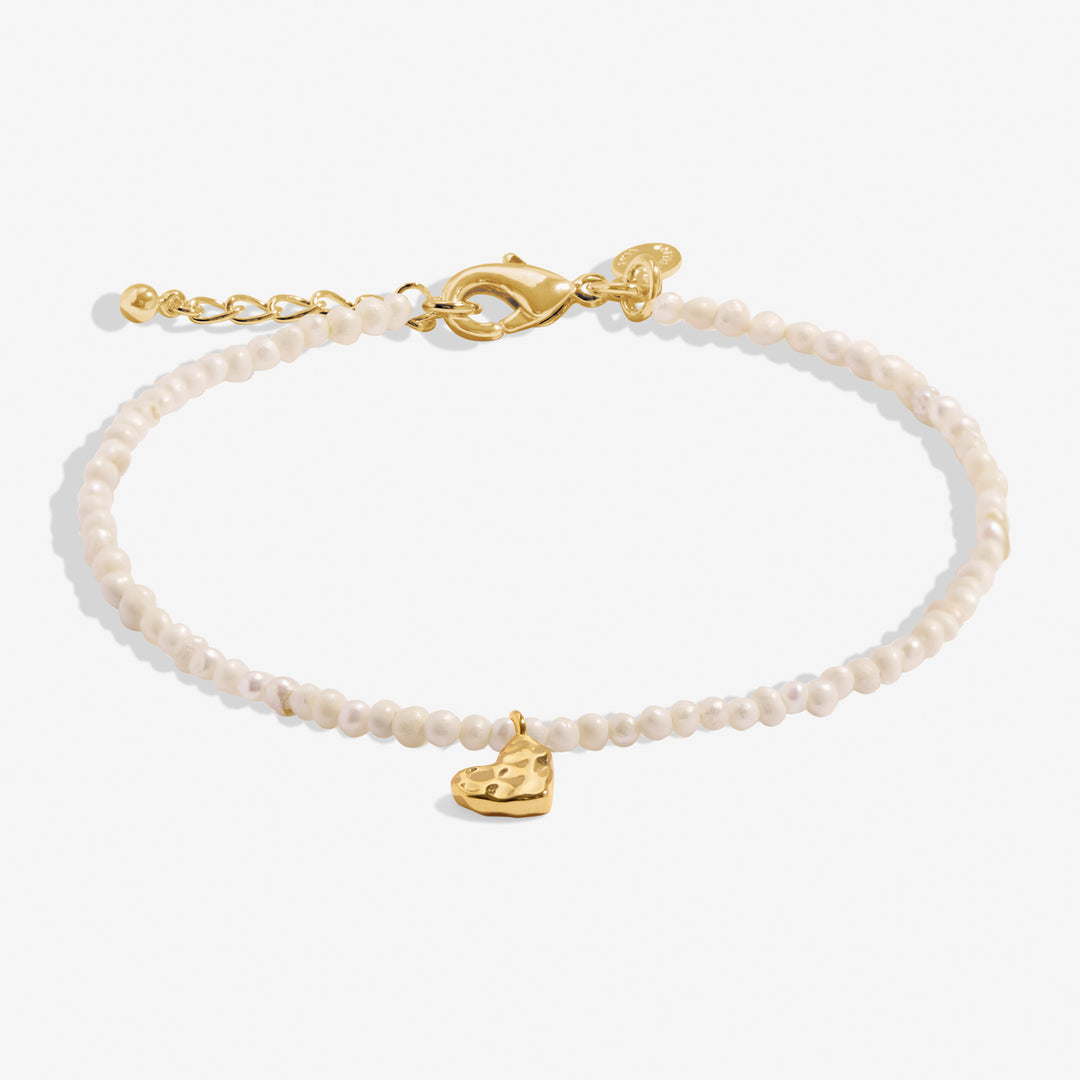 Joma Jewellery Mini Charms Natural Matte Pearl Heart Gold Plated Bracelet