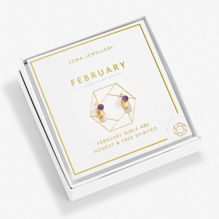 Joma Jewellery Birthstone Hoop Earring February Gold Plated Earrings