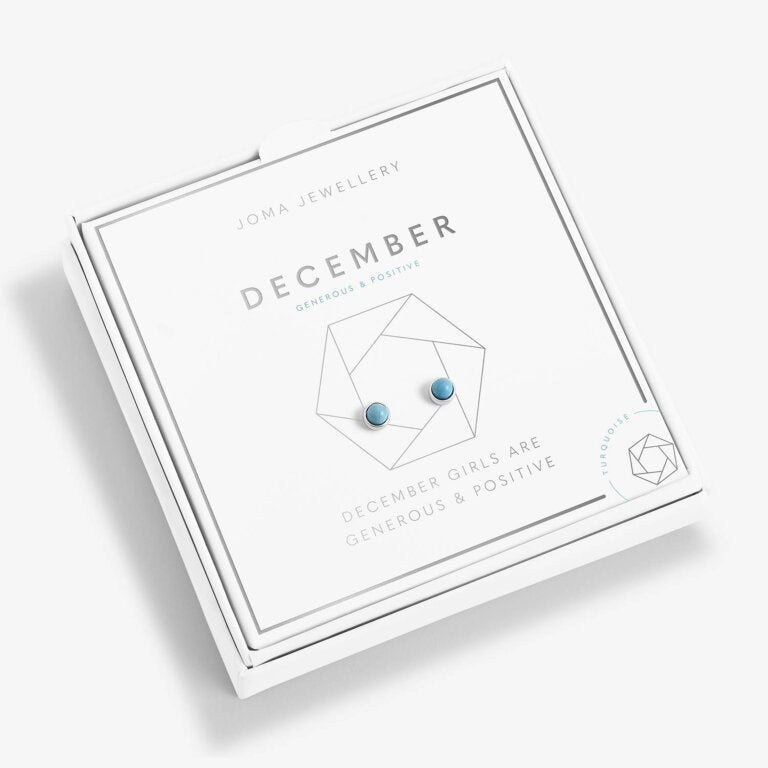Joma Jewellery Birthstone Boxed Earrings December Turquoise Silver Earring Box
