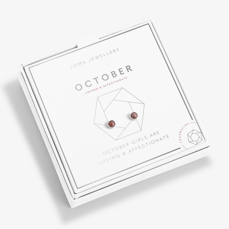 Joma Jewellery Birthstone Boxed Earrings October Tourmaline Silver Earring Box