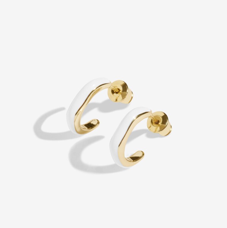 Joma Jewellery Beau White Enamel Gold Plated Hoop Earrings