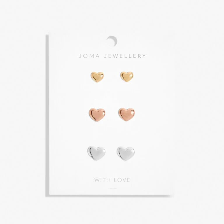 Joma Jewellery Florence Graduating Hearts Silver Rose Gold And Gold Set Of 3 Earrings