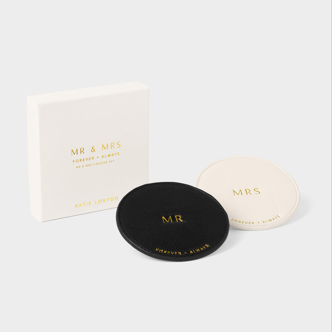 Katie Loxton Coaster Set Mr & Mrs Off White And Black