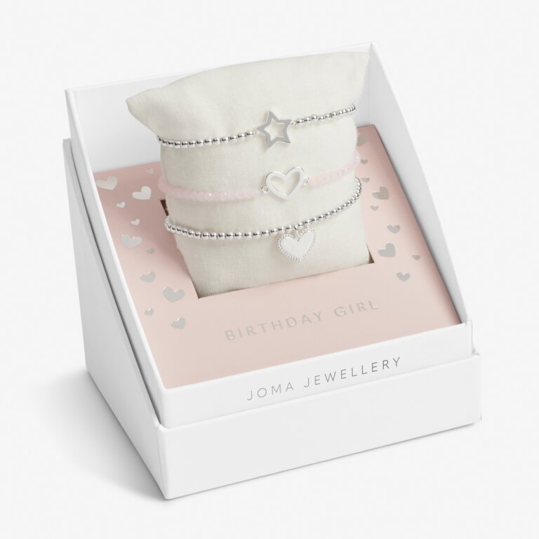 Joma Jewellery Childrens Celebrate You Gift Box Birthday Girl Silver Set Of 3 Bracelets