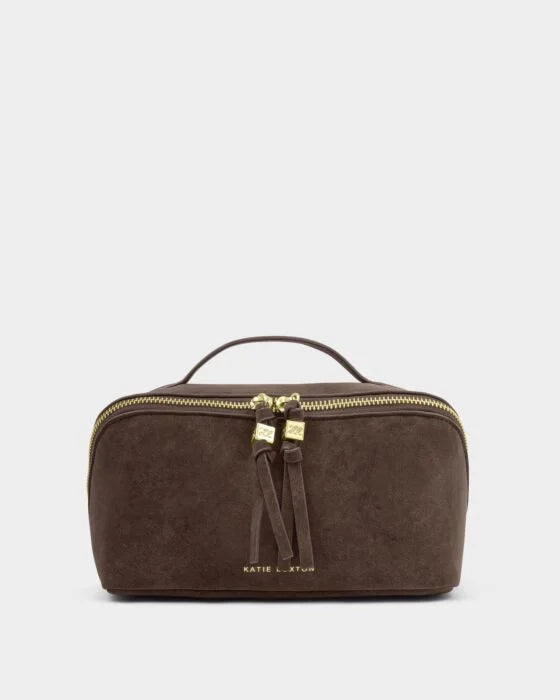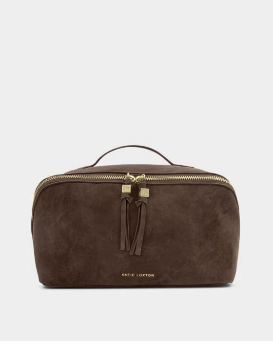 Katie Loxton Soho Large Make Up/Wash Bag Chocolate Suedette