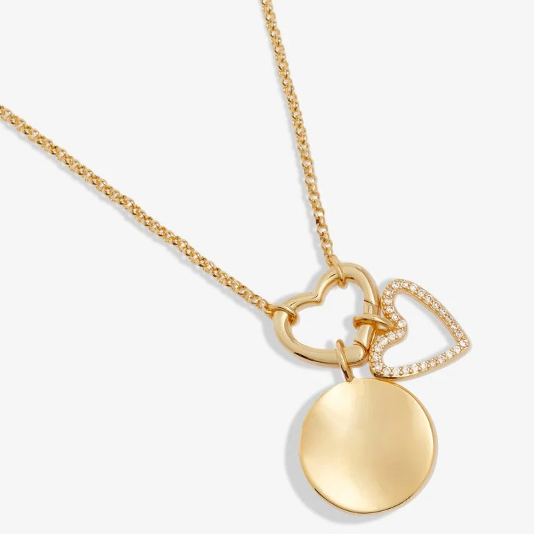 Joma Jewellery Little Links Heart Clasp Heart Charms Gold Plated Necklace