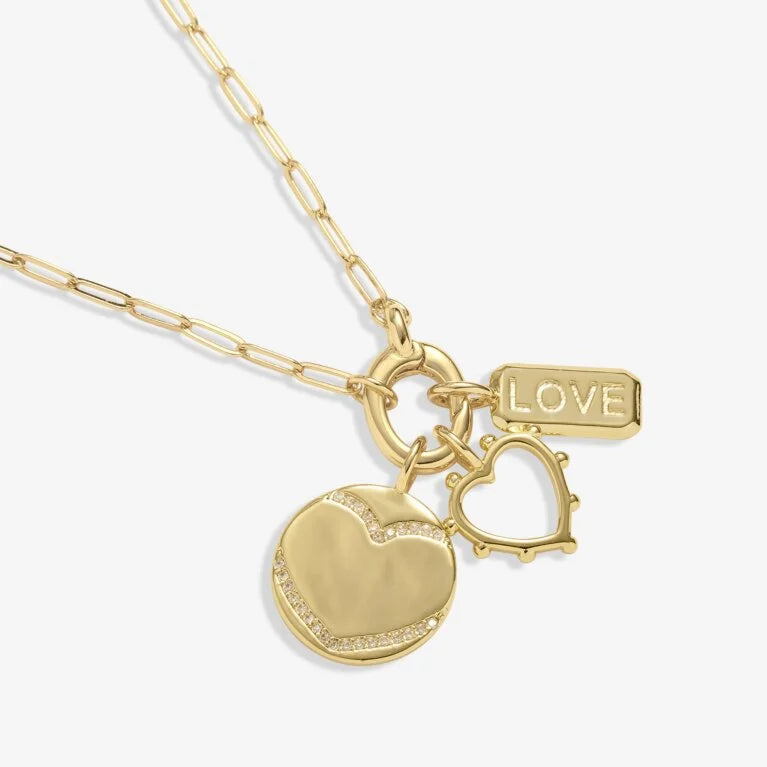 Joma Jewellery Little Links Oval Clasp Love Charms Gold Plated Necklace