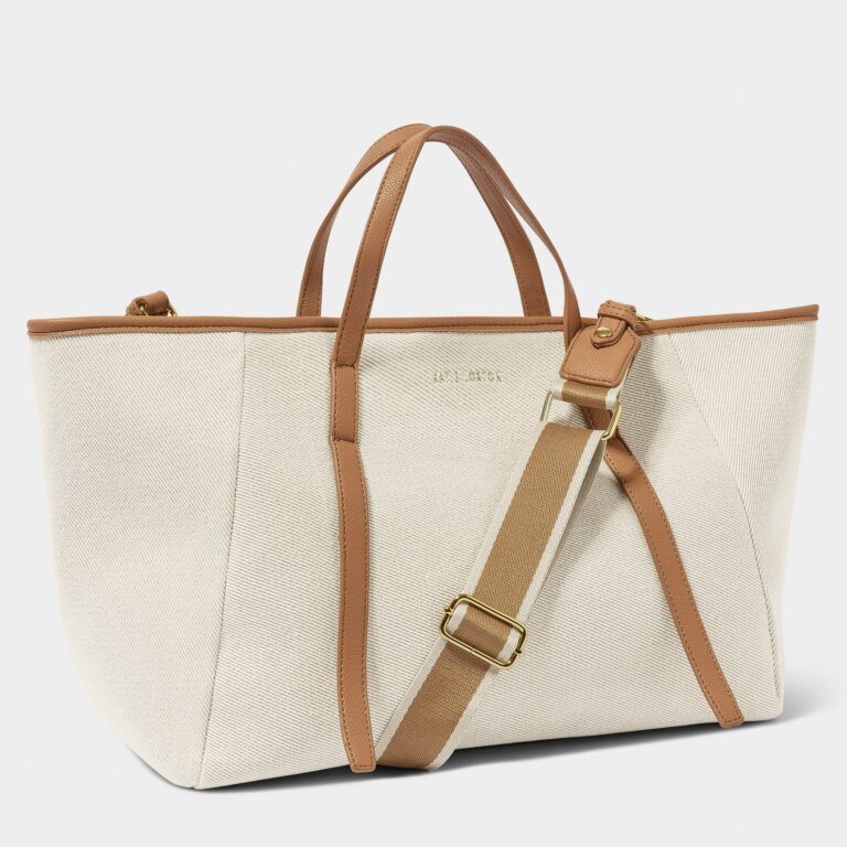 Katie Loxton Capri Canvas Tote Bag Tan /Off White